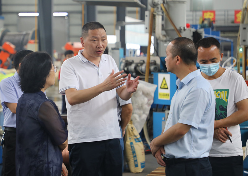 李農妹一行深入三湘電纜的生產車間參觀指導,就公司近三年科技創新政策的出臺、科技項目的實施、科技成果的轉換、科技平臺的創建、科技園區的建設、引進和培養科技人才的落實情況進行實地調研指導,并就車間生產管理、技術研發支持等方面現場提問,公司董事長申旺都逐一詳細解答。