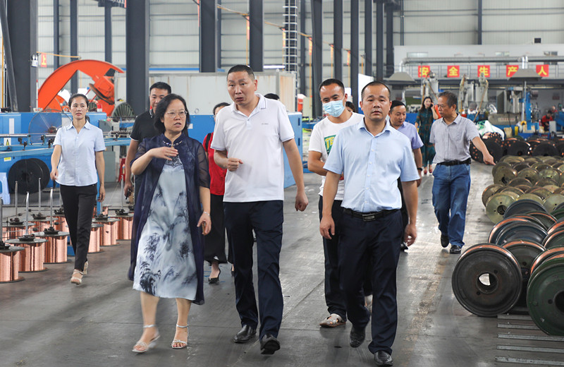 2020年8月26日,為進一步提高科技服務園區建設和實體經濟發展的能力,更好的支持和服務經濟社會高質量發展,永州市人大常委會副主任李農妹帶隊深入湖南三湘電線電纜有限責任公司開展科技調研。市人大教科文衛委主任鐘敦北,永州經開區黨委委員、管委會常務副主任張明,永州經開區經濟發展局局長蔣滿華參加調研,湖南三湘電線電纜有限責任公司董事長申旺陪同調研并匯報工作